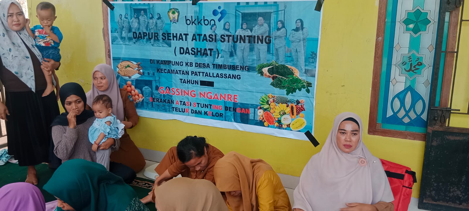 Poskotabesar.Gowa. Pemerintah Kabupaten Gowa melalui Balai Pengendalian Penduduk dan Keluarga Berencana (PP/KB) Kecamatan Pattallassang bekerja sama dengan Pemerintah Desa Timbuseng melaksanakan Program Dapur Dashat (Dapur Sehat Atasi Stunting).