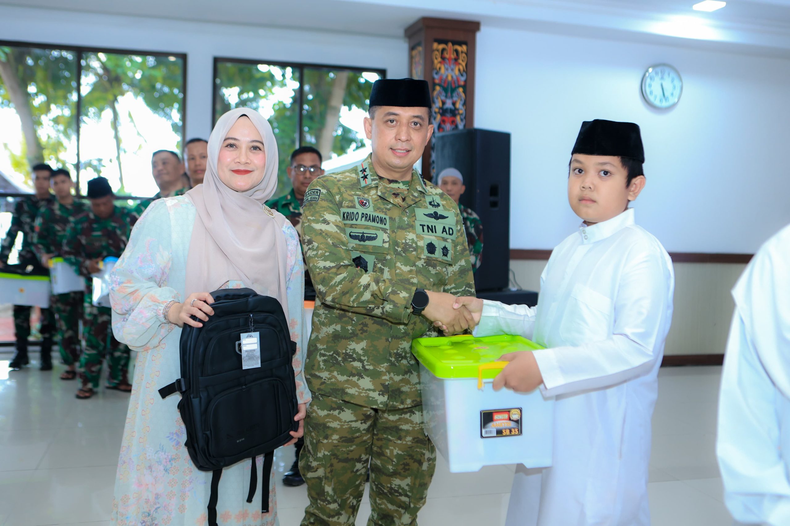 “Pemberian bingkisan tali asih ini bukan sekadar bantuan materi. Ini adalah pesan bahwa TNI selalu hadir sebagai pelindung, sekaligus saudara, bahkan bisa menjadi pengganti orang tua bagi mereka yang kehilangan sosok ayah dan ibu,” ujar Pangdam.