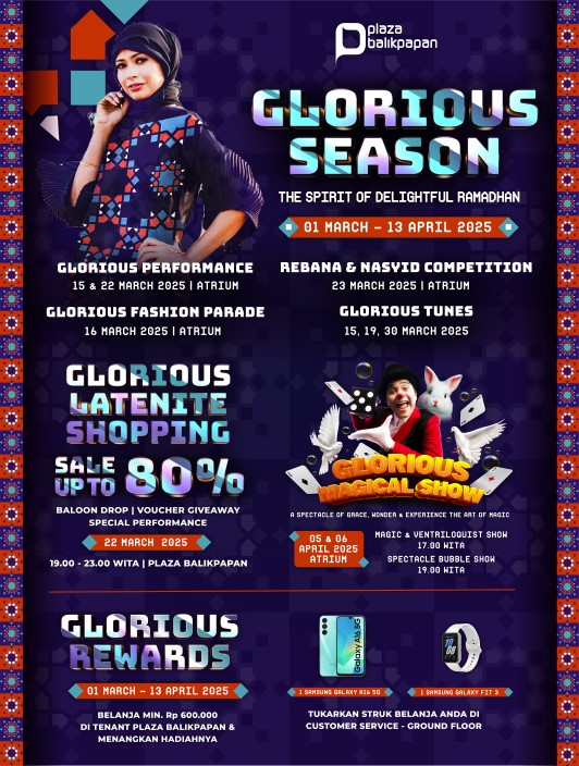 Pada 16 Maret 2025, Plaza Balikpapan juga akan menggelar Glorious Fashion Parade, sebuah pertunjukan busana muslim Ramadan yang menampilkan koleksi istimewa. Tentunya, acara ini akan menjadi referensi bagi pengunjung yang ingin memperbarui penampilan untuk Hari Raya.