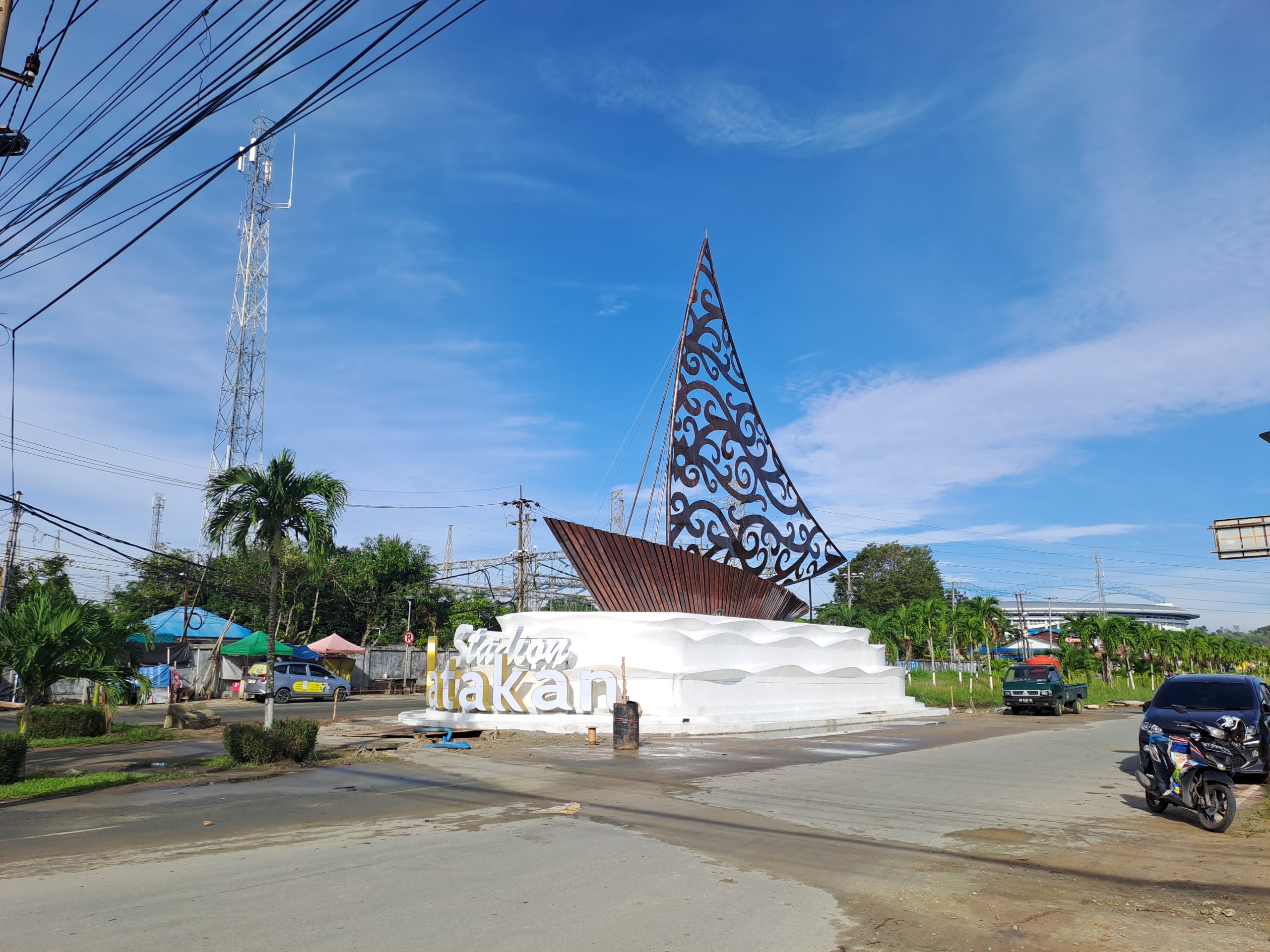 Poskotabesar.Balikpapan. Salahsatu Icon Baru di Area Stadion Bola Batakan Balikpapan Timur rampung sudah pembangunannya berupa Tugu Perahu Layar berbahan Perunggu berasal dari Luar Balikpapan yang tahan dengan Korosi dari cuaca angin laut di Jalan pintu masuk Stadion Bola.